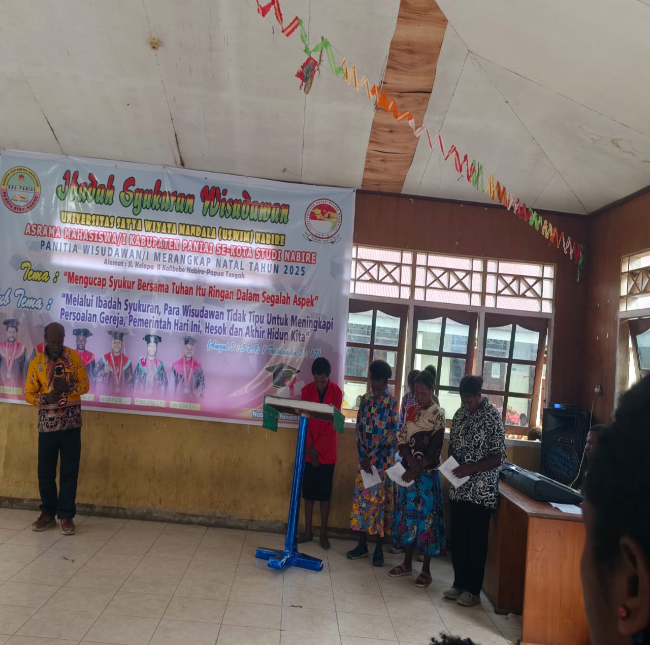 NABIRE, JELATANEWSPAPUA.COM –  Asrama Mahasiswa Kabupaten Paniai se-Kota Studi Nabire menggelar Ibadah syukuran bagi para wisudawan Universitas Satya Wiyata Mandala (USWIM). Kegiatan ini berlangsung di Asrama Paniai, Jalan Kelapa II, Kalibobo, Kabupaten Nabire, Papua Tengah, Selasa (18/11/2025).