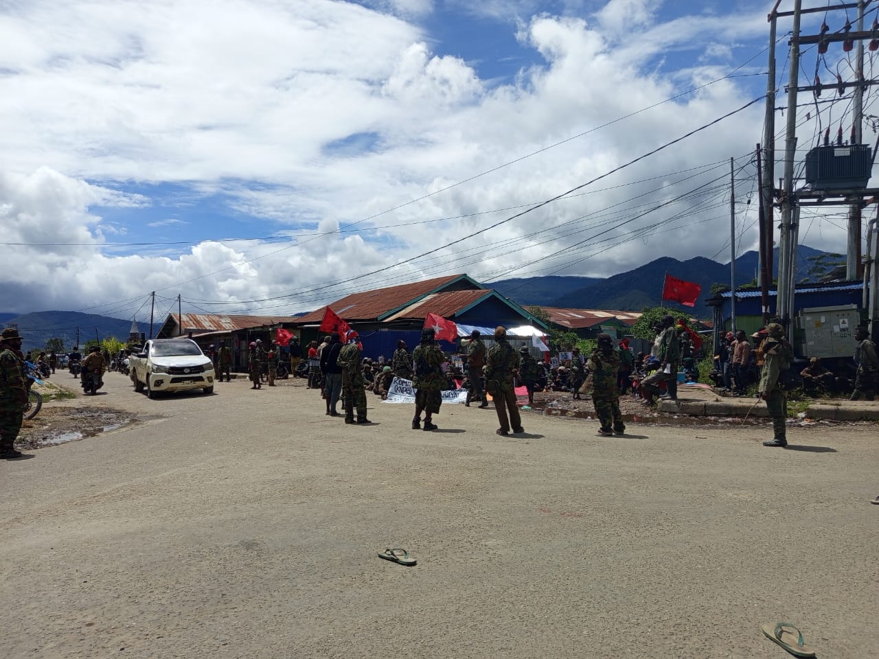 Sejak pagi, para peserta aksi mulai memenuhi area terminal dengan membawa spanduk, poster, dan simbol perlawanan yang mencerminkan pengalaman panjang masyarakat Papua dalam menghadapi berbagai peristiwa kekerasan. Lagu-lagu perjuangan dinyanyikan bersama untuk menguatkan semangat massa.