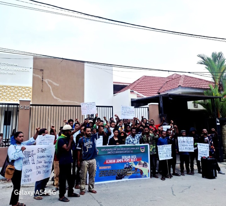 MAKASSAR, JELATANEWSPAPUA. COM- Himpunan Pelajar dan Mahasiswa-Mahasiswi Lanny Jaya (HPM-LJ) di kota studi Makassar menyatakan sikap menolak kehadiran militer organik maupun non organik di Kabupaten Lanny Jaya, Provinsi Papua Pegunungan. Kehadiran aparat bersenjata dinilai hanya menimbulkan kekerasan, intimidasi, dan pelanggaran kemanusiaan terhadap masyarakat sipil.