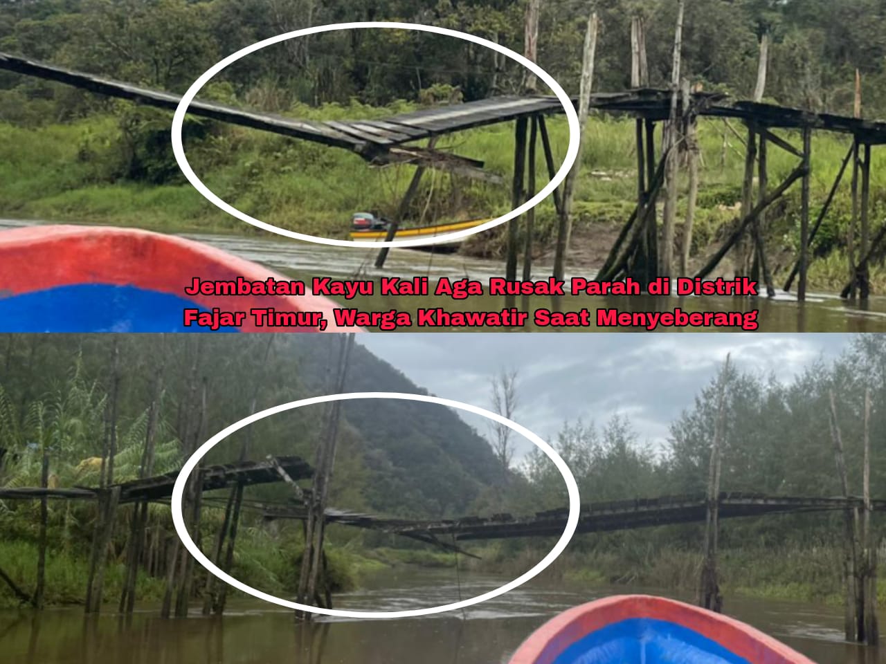 Jembatan kayu Kali Aga, yang menghubungkan kampung Bodatadi menuju Kobetakaida, kini mengalami kerusakan parah. Jembatan ini menjadi jalur vital bagi warga dari berbagai kampung dan suku di sekitar Distrik Fajar Timur dan Youtadi, Kabupaten Paniai, Papua Tengah.