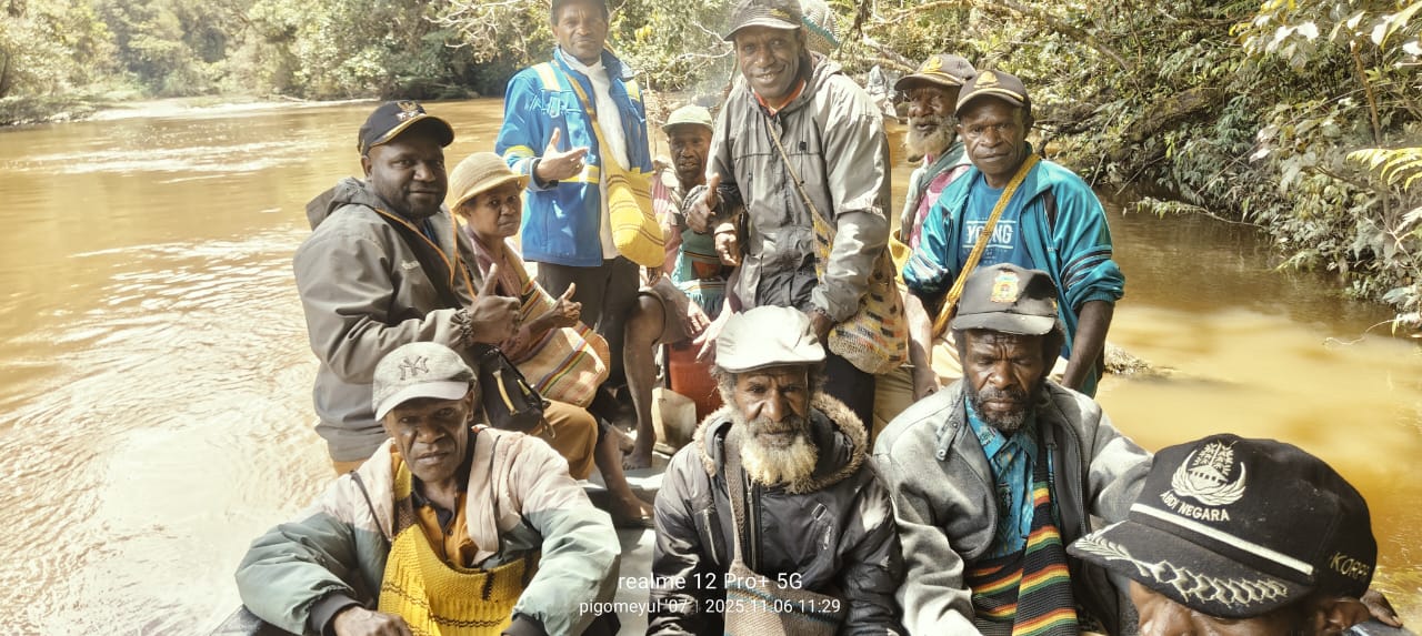 Kepala Distrik Kamuu Selatan Yulianus Pigome bersama Rombongannya Tinjau Muara Kali Edege, Dogiyai, (06/11). - Redaksi JNP