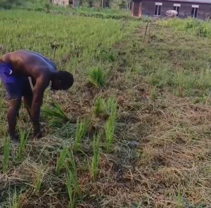 Kegiatan tersebut berlangsung di Kampung Wanggar Sari RT 005/RW 005, Jalan Poros, Sabtu (25/04), dengan fokus pada pengelolaan kebun padi milik Aser Yogi bersama Kelompok Tani Anak Muda Maju Papua Tengah.