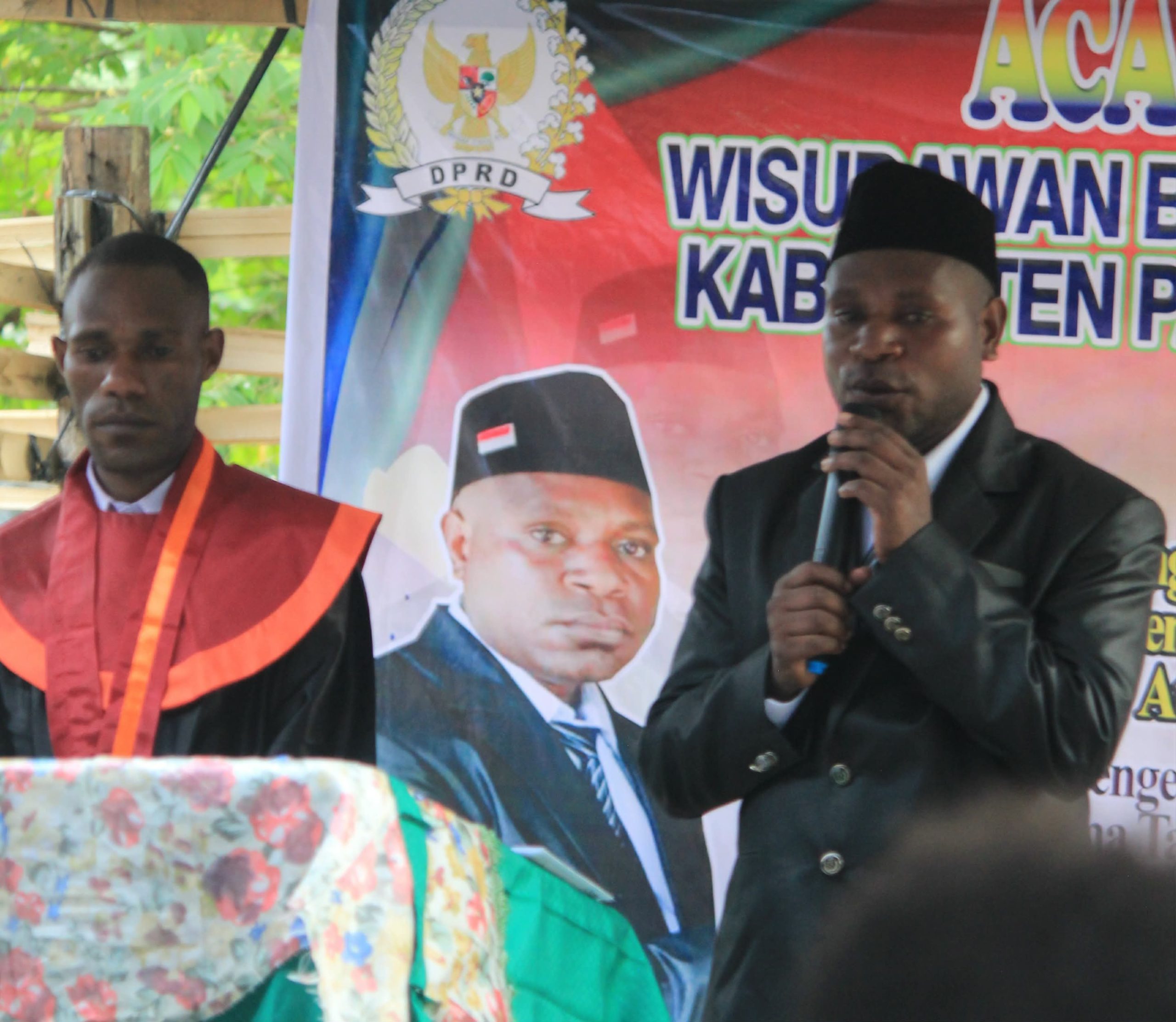Di tengah rangkaian ibadah, ia juga memimpin doa khusus untuk para wisudawan dan anggota DPRK Paniai agar seluruh harapan, tujuan, dan tanggung jawab pelayanan nantinya dapat berjalan baik oleh kuasa Tuhan.