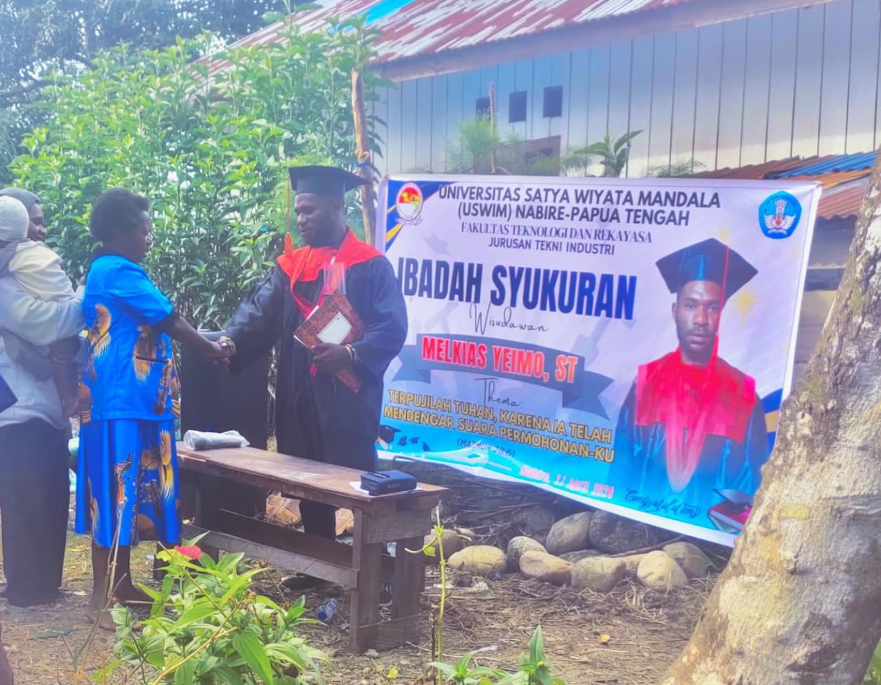 NABIRE, JELATANEWSPAUA.COM – Melkias Yeimo, S.T., menggelar ibadah syukur atas kelulusannya sebagai Sarjana Teknik dari Universitas Satya Wiyata Mandala (USWIM), yang berlangsung di Nabire, Papua Tengah, Senin (27/4/2026).
