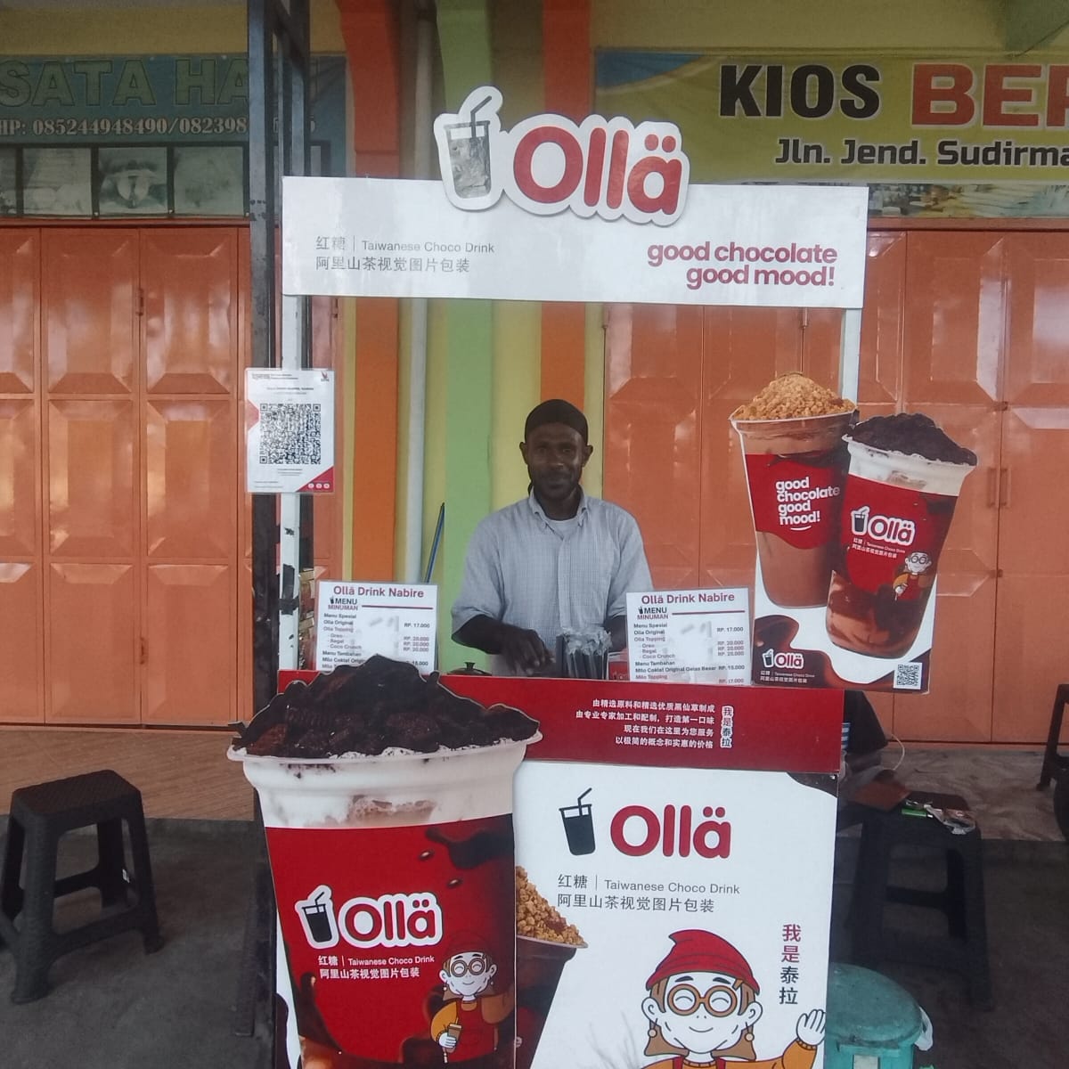Minuman andalannya adalah Olla Coklat, olahan coklat khas Taiwan yang ia pelajari dari pengalaman dan referensi daring. Rasa manis dan segarnya membuat banyak orang kembali membeli. Tidak heran jika tempat persinggahan banyak orang dari berbagai kalangan.