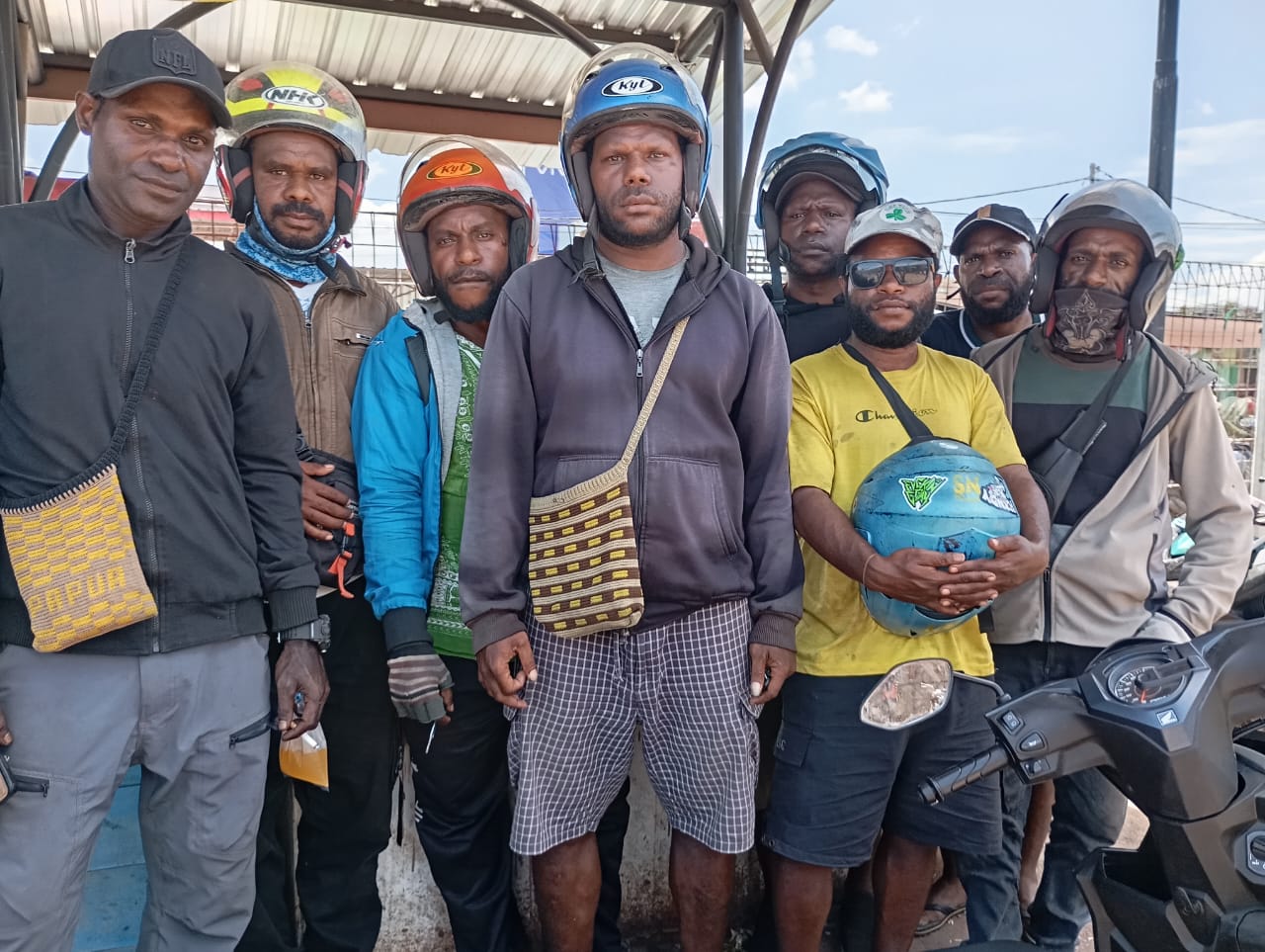Pamax (31), pengojek Pasar Karang yang juga bergabung di Komunitas Nabire Baru (Helm Biru), mengklarifikasi bahwa tidak semua pengojek helm biru ikut serta dalam aksi kemarin.