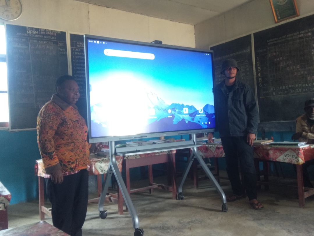 Kepala Sekolah Yosephina Degei, S.Pd, tampak antusias saat menerima fasilitas yang dilengkapi fitur audio visual tersebut.